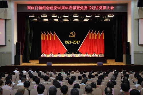 | 为隆重纪念中国共产党成立96周年,进一步抓紧抓实基层党建工作,弘扬先进单位及个人的优秀事迹,激励各基层党组织和广大党员充分发挥引领表率作用。2017年7月1日,西红门镇组织召开全镇纪念建党96周年表彰暨党委书记讲党课大会。