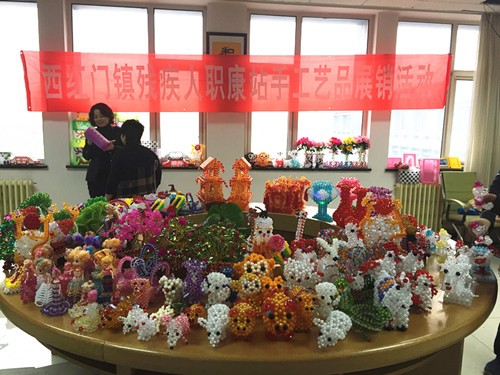 2016年12月26日上午,西红门镇残联在镇政府会议室,举办了一场残疾人手工艺品展销活动。活动中,引人注目的手工艺品,琳琅满目,形象逼真,精美的展品全部是出自西红门镇职康站残疾人之手,向往了他们对艺术和美好生活的共同追求。还可以根据自己喜欢的形象定制,由残疾朋友们现场制作,吸引不少群众的围观和购买。 此次展销活动,卖出手工艺品数十件,反映良好,不仅丰富了残疾人的精神深化生活,同时,给大家和残疾人交流接触提供立刻良好的平
